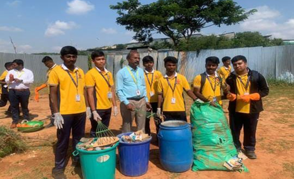 Students of Patel Pre-University College actively participated in the initiative by cleaning the campus surroundings and spreading awareness about maintaining sanitation. Through this activity, they developed a sense of civic responsibility and understood the importance of contributing to a clean and green environment.